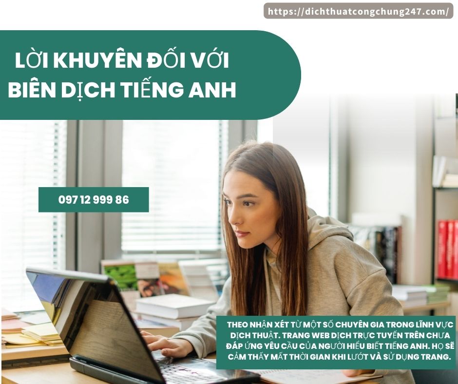 Theo nhận xét từ một số chuyên gia trong lĩnh vực dịch thuật. Trang web dịch trực tuyến trên chưa đáp ứng yêu cầu của người hiểu biết tiếng Anh. Họ sẽ cảm thấy mất thời gian khi lướt và sử dụng trang.