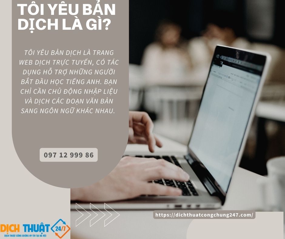 Trên đây là tất cả thông tin về trang web Tôi yêu bản dịch. Nếu ai cần có bản dịch thuật anh sang việt chính xác nhất hãy đến đơn vị dịch thuật công chứng 247. Hy vọng mọi người sẽ đạt được đúng nguyện vọng mong muốn.